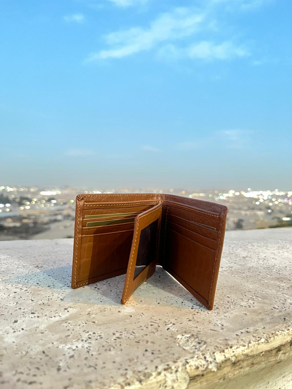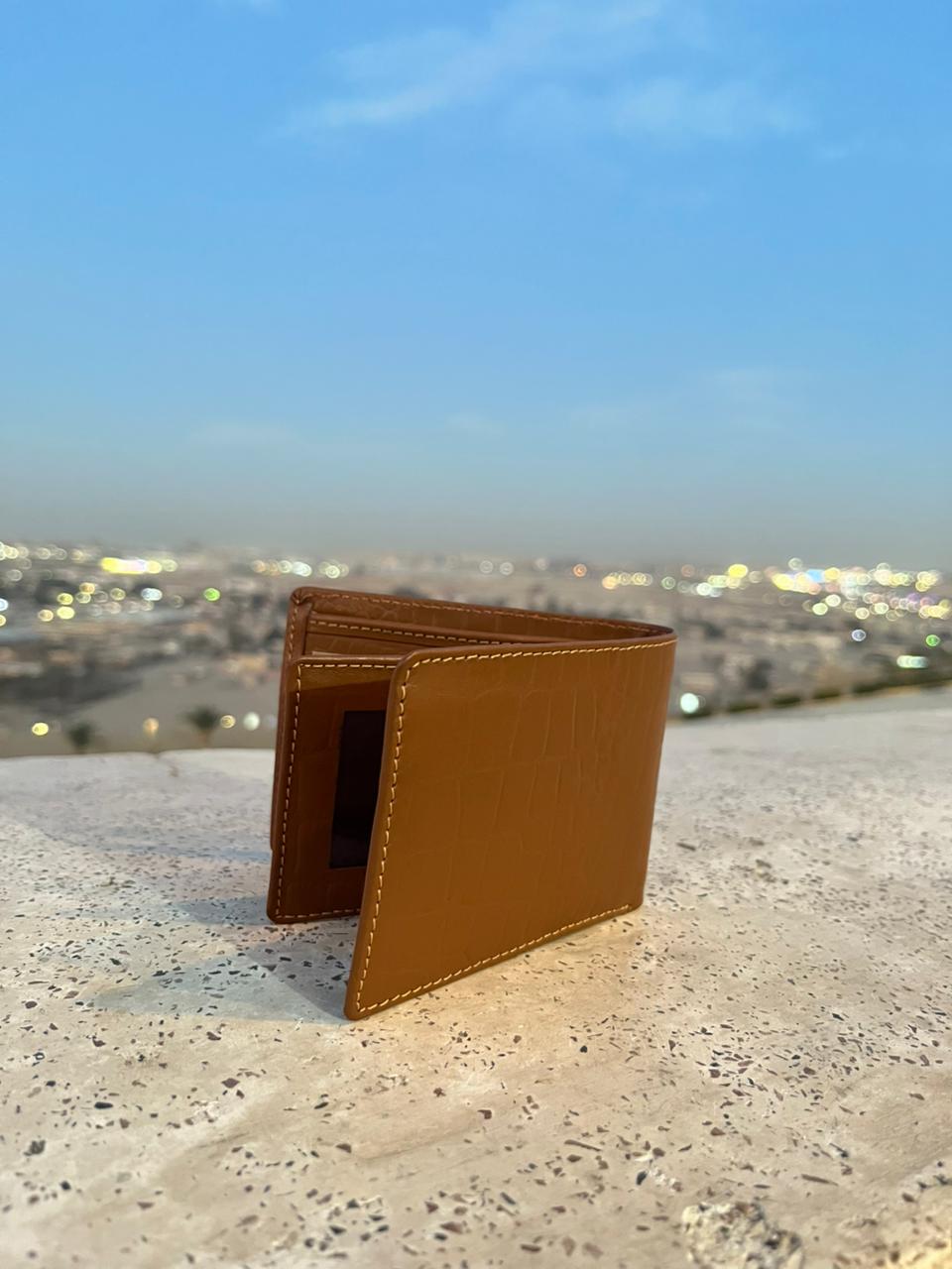 محفظة رجالي من جلد طبيعي 100%، تصميمها رفيع وعملي، تنفع للاستخدام اليومي من غير ما تزوّد حجم في الجيب.