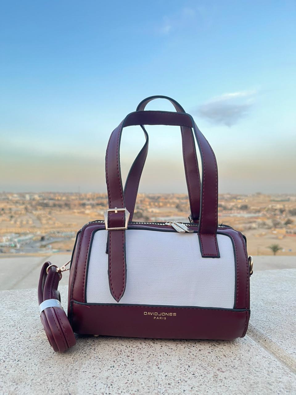 الشنطة فيها يد علوية متينة بتديها شكل كلاسيك شيك، وكمان حزام كتف قابل للفك والتعديل علشان تلبسيها بالطريقة اللي تريحك